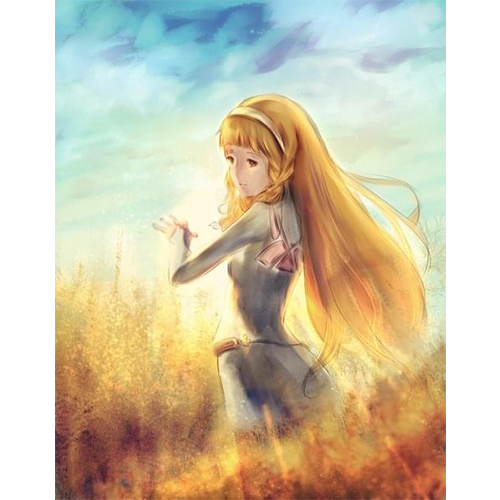 緑と風の中でヒビオルを胸に抱いているマキアがとても幸せそうで、このイラストに込められた物語を想像したくなりました。