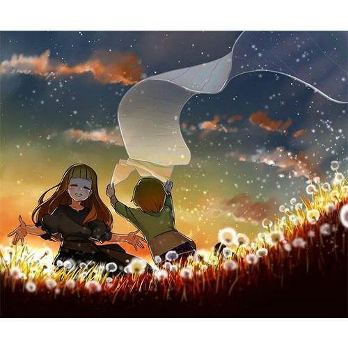 こちらの絵は、ヒビオルが右上に向かい途切れることなく舞広がって画面外に続いているので、マキアとエリアルのヒビオルはこれからもずっと続いていくってイメージが浮かび凄く惹かれました!ありがとうございます。素敵です!